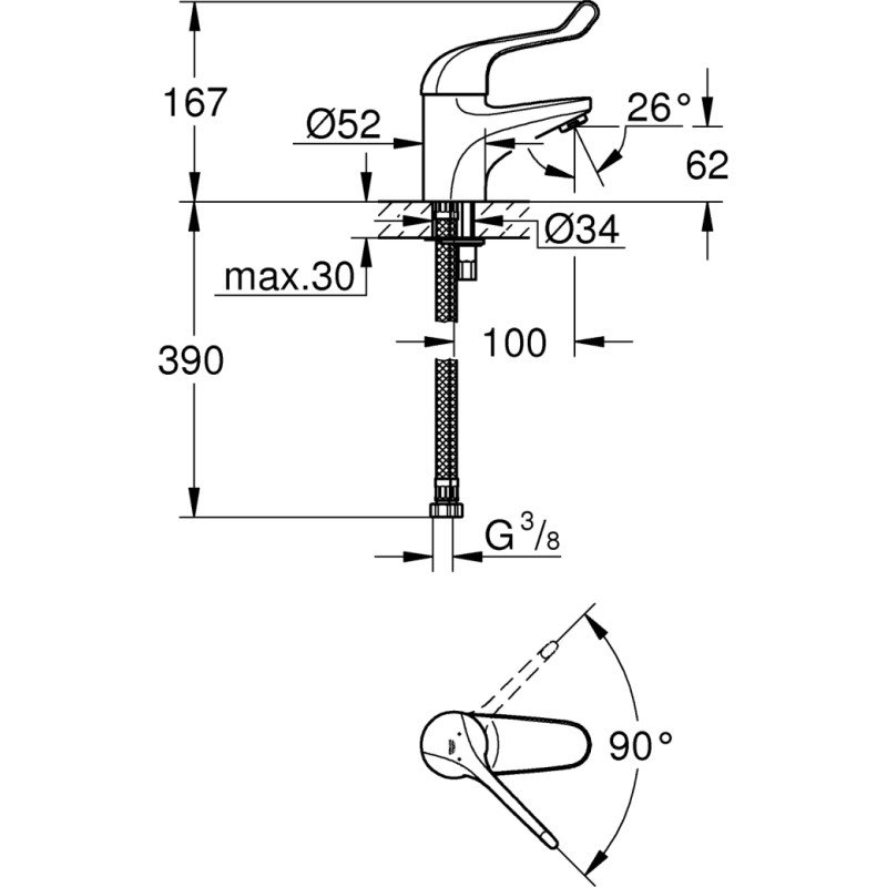 Grohe Izlietnes maisītājs Euroeco Special SSC, iztece 100 mm, hroms